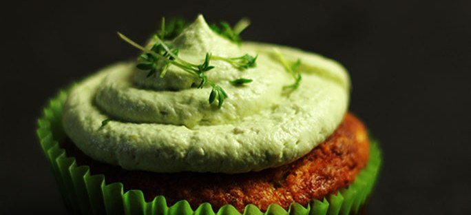 Die Basis also der Muffin ist ein körniger, leicht scharfer Mais-Muffin und das Topping ist eine kühlende Avocado-Frischkäse-Mousse besprenkelt mit Kresse. Eigentlich wollte ich noch etwas Wasabi noch in der Mousse untermischen, aber das wäre dann doch zu viel. Diese Idee hebe ich mir für eine andere Variante auf. Gebacken wurden diese Cupcakes in einer „Jumbo-Muffin-Form“ aber für eine Party würde ich die dann doch ehr als „normale“ oder auch als Mini-Muffins backen, da die Zusammen mit der Mousse doch recht mächtig werden können.