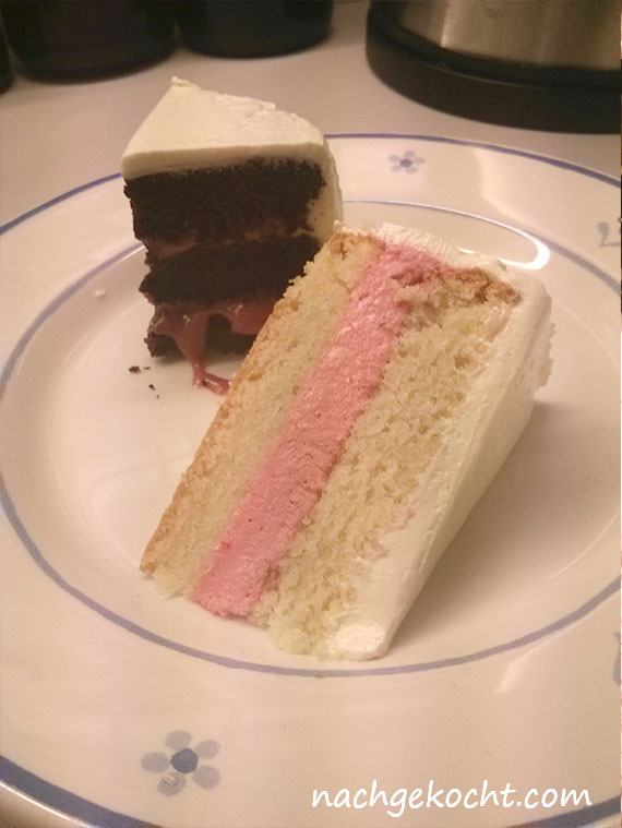 Caketesting Previous Next Veröffentlicht September 23, 2013 in 570 × 759 in Lebenszeichen und Torte Schokoladenkuchen mit Himbeercurd und Vanillekuchen mit Erdbeer-Frischkäse-Buttercreme