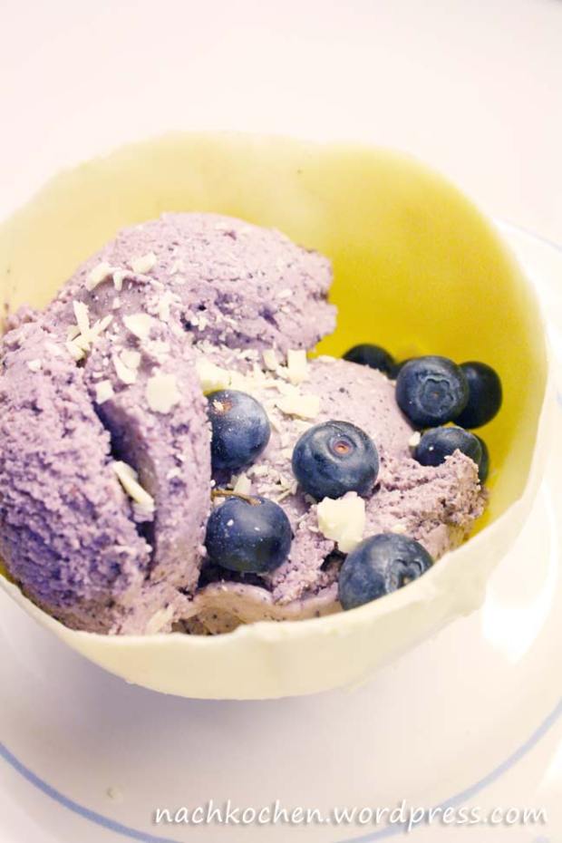 Blaubeeren pürieren, alle Zutaten in eine Schüssel geben und ordentlich vermengen. Ich hab nur einen guten Schuss ca. 20g Milchmädchen hinzugefügt, am besten die Masse vor dem zugeben abschmecken und ggf. mehr hinzugeben oder auch ganz weg lassen. Damit die Maschine schneller arbeiten kann, evtl. die Masse vorher in den Kühlschrank kühlen. Masse in die Eis-Maschine geben und Anleitung der Maschine befolgen. Wenn die Masse noch nicht fest genug ist, in eine gefrier-geeignete Dose geben und für eine 1/2 – 1 Std. in den Froster geben. Im Nachhinein würde ich auch ein Schuss Zitrone und etwas Zitronen Abrieb dazugeben, damit der Geschmack etwas runder wird.