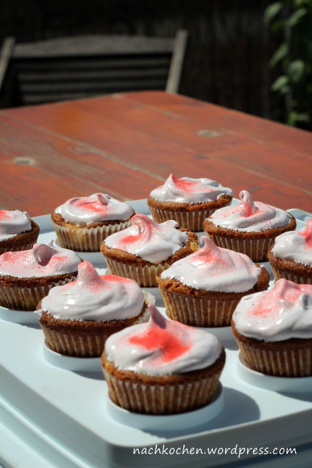 Das Rezept habe ich aus 130 Gramm Liebe (sehr zu empfehlen!) Allerdings reicht die angegebene Menge für mehr als 12 Cupcakes. Ich würde schätzen Mindestens 30. Also seit gewarnt 😉 Oder sucht im Netz nach einer alternative. Auch ein Standrührgeräht ist sehr zu empfehlen, außer man hat sehr gute Oberarme. Wichtig hierbei ist auch ein Zuckerthermometer.