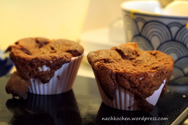 Das Rezept ist ausgelegt für 24 Cupcake, aber wer soll das bei mir alles essen? Die Freunde und Kollegen habe ich schon genug gemästet. Also habe ich das Rezept halbiert, es sind zwar immer noch 12 Stück, aber die bekomme ich schon noch los. Muffins sind wohl die buckelige Verwandtschaft der Cupcakes, aber ich fand die Muffins auch ohne Topping ganz köstlich.