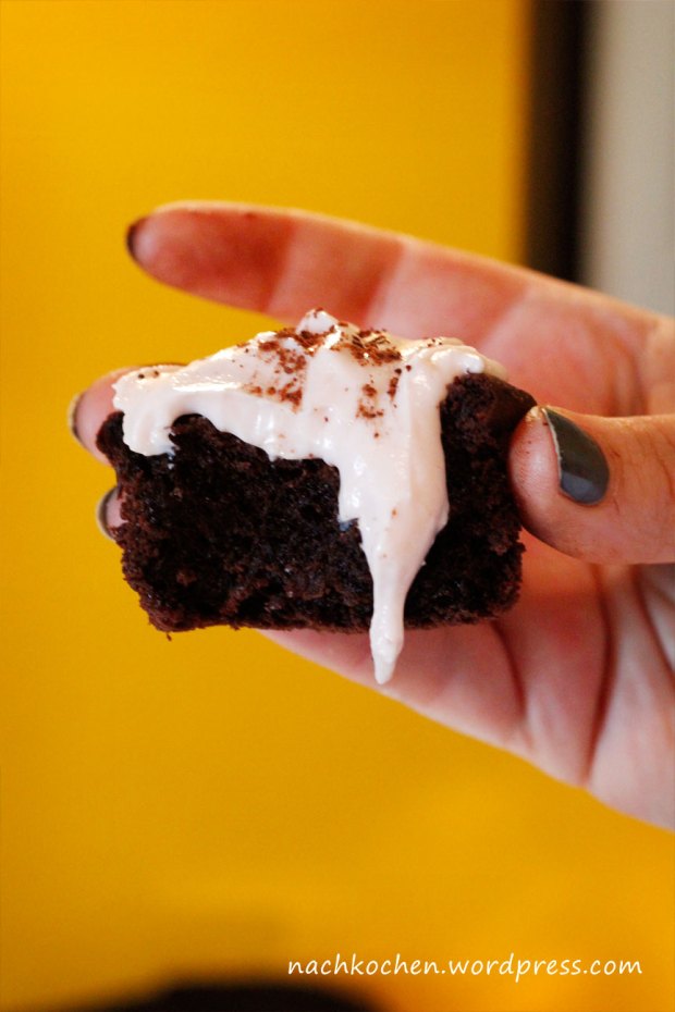 Zum Glück, denn das Tiramisú war auch nicht so meins 😉 was nicht am Geschmack bzw. Rezept lag. Das Tiramisú war eigentlich lecker, die Creme war super, aber es war nach mein Geschmack zu matschig (also nass). Die Löffelbiskuits habe ich anscheinend etwas zu lange in den kalten Marsala-Cognac-Kaffee getaucht. Das Nächste Mal (wenn es eines gibt) werde ich die Kekse beträufeln und nicht tauchen und auch darüber hier berichten. Ach so das Rezept habe ich bei einem  Chocolate Chili Mango gefunden. Ein schöner (engl.) Food-Blog mit allerlei leckeres Süßkram.