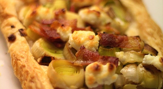 Zur Feier des Tages gab es dann eine Frühlings-Blätterteig-Tart mit Lauch, Bacon, Ziegenfrischkäse und natürlich auch Bärlauch.