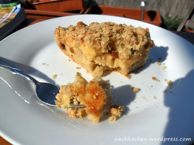 Insgesamt war der Kuchen sehr lecker, schön saftig, allerdings hat mir die Streuselschicht nicht ganz so gut gefallen. Beim nächsten Mal werde ich eine andere Streusel-Variante nehmen.