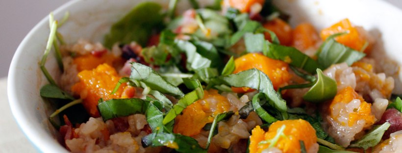 Was sich bei der Suppe bewährt hat, kann bei Risotto für Faule auch nur recht sein: Gebackener Kürbis-Risotto mit Bacon. Zum Rezept hier klicken.