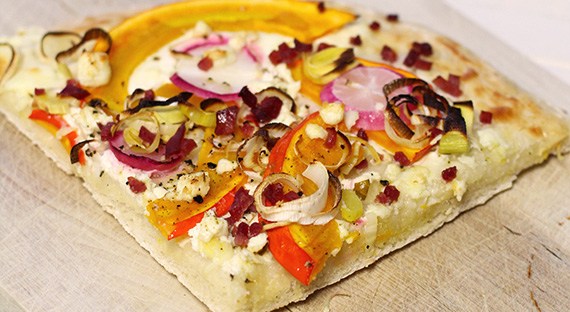 Herbst bedeutet auch Federweißer-Zeit, wieso nicht mal die traditionellen Flammkuchen mit Kürbis aufpeppen? Zum Rezept hier klicken.