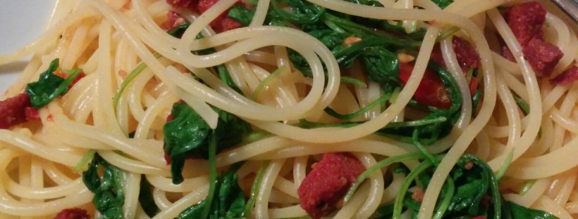 4 Scheiben Bacon klein schneiden und in die kalte Pfanne geben. Die Hitze mittel-hoch drehen. Während das Fett vom Bacon schmilzt, 2 kleine Tomaten fein würfeln. Frischer Rosmarin klein hacken (ca. 1/2 – 1 TL). 2 Frühlingszwiebeln klein schneiden. Alles zusammen zum an gebratenen Bacon geben. 4 Eier mit 1 EL Mineralwasser verrühren und in die Pfanne gießen. Kurz stocken lassen und verrühren bis alles gestockt ist.