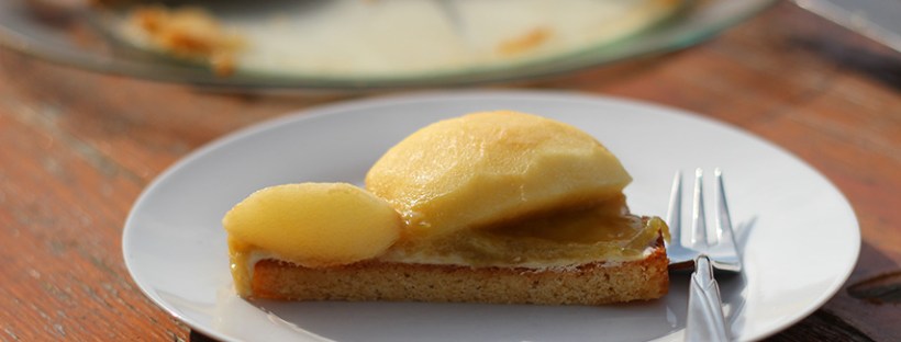 Beim zweiten Versuch habe ich mir das karamellisieren der Äpfel gespart. Den Kuchen habe ich dann zusammengebaut und die noch warmen Äpfel mit einer spontan zusammengerührten Karamellsauce übergossen. Die Kombination vom Shortbread-Boden, Rhabarber, Apfel und Karamellsauce war sehr, sehr lecker und zu viert wurde der Kuchen fast gänzlich verdrückt. Trotz Karamell war der Kuchen auch nicht übermäßig süß.