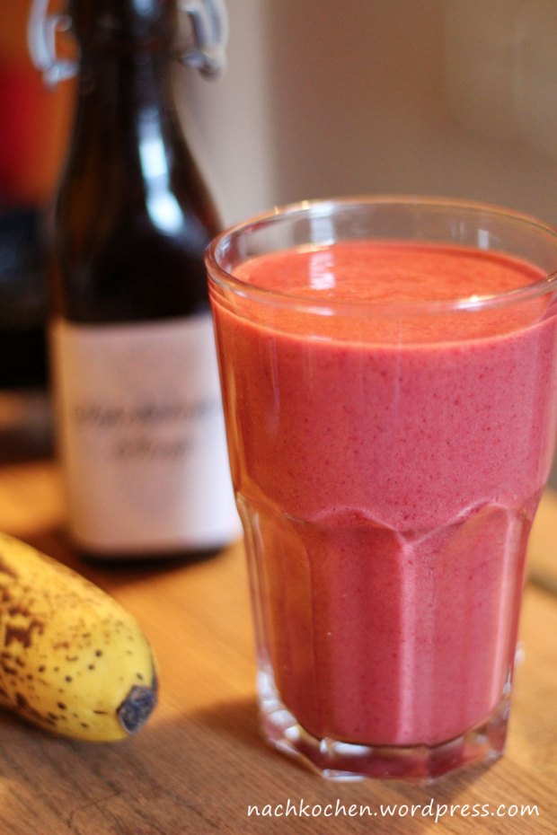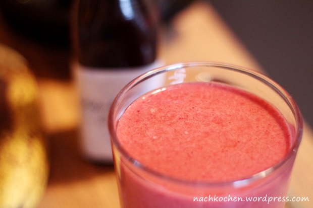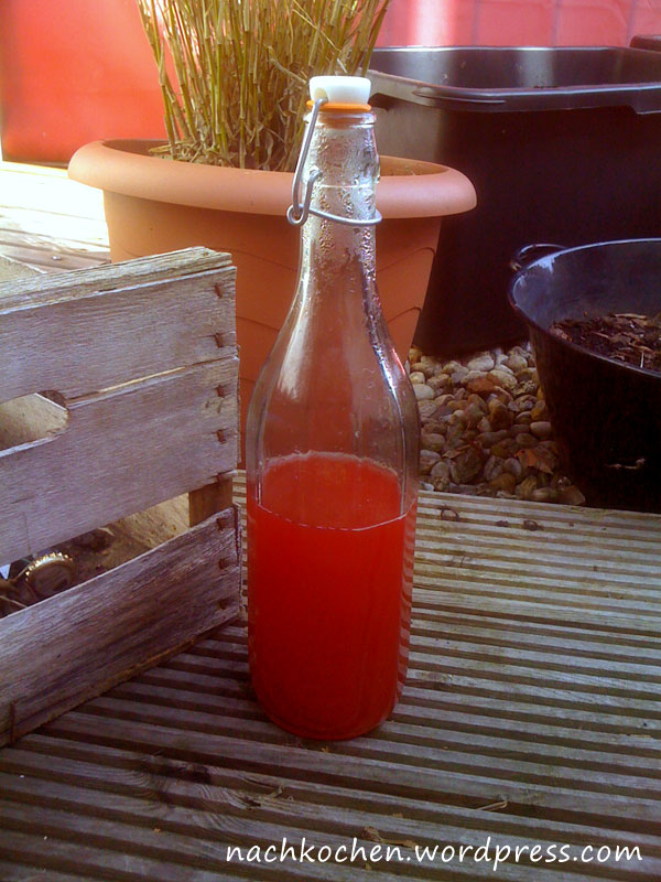 Dieser Sirup wird wirklich sehr dickflüssig, umsomehr wenn er im Kühlschrank steht, also kurz in ein Wasserbad gestellt und schon kann man das flüssige Hüftgold auf dein Eis, in seine Milch oder wie auf den nachfolgenden Bild zu pochierten Birnen.